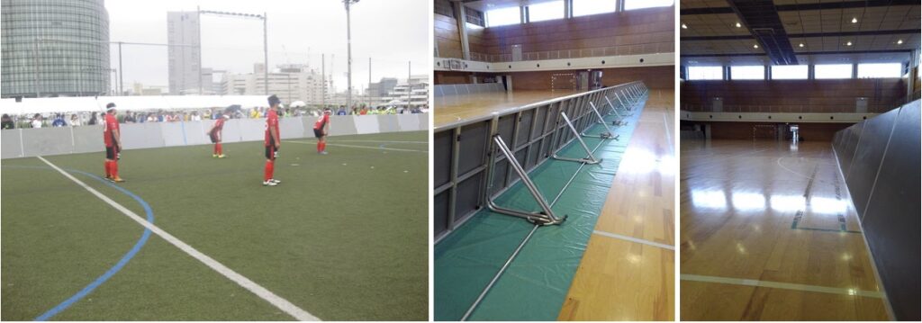ブラインドサッカーではサイドラインがない変わりにサイドフェンスがあり、100cm~120cm 角度10度以内。