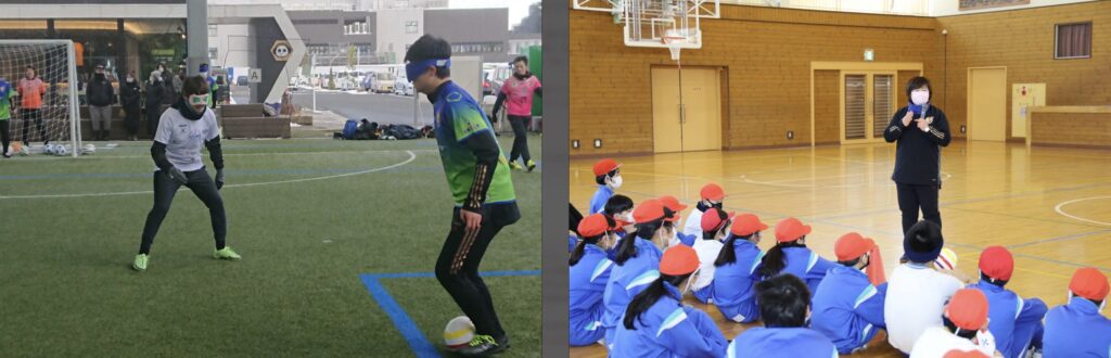 ブラインドサッカーの体験会では、視覚がブラインド状態になるとどうなるのかを体験して頂きます。